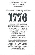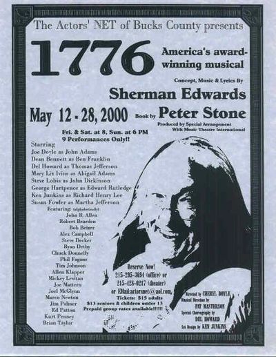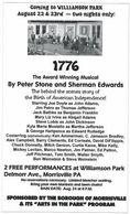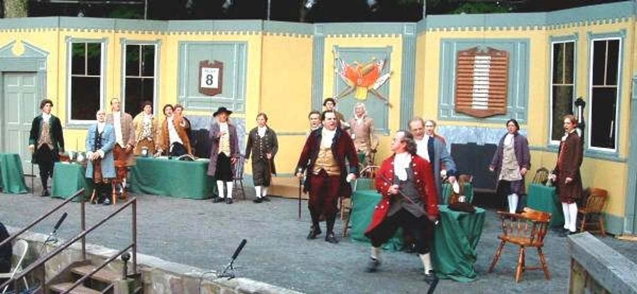 Soon after it first produced this show on the stage at the Heritage Center in Morrisville, 1776 quickly became the NET's signature show. in 2008 it became a centerpiece of Morrisville Borough's "Arts in the Park" summer series. Here are a few comments from the event's organizer: