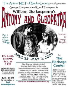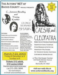 Caesar (Jamie Bradley/seated) confronts from left: Ptolemy's (Logan Junkins) guardian Pothinus (Dale Simon). General Achillas (Chuck Donnelly) watches