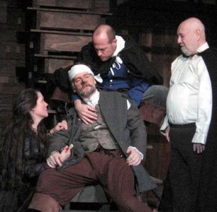 Ragueneau describes Cyrano's nose. Marco Newton (center) as Ragueneau, Walter Smyth (left) as First Marquis & JJ Newberry as Brissaille