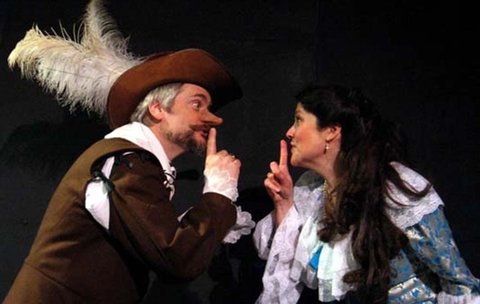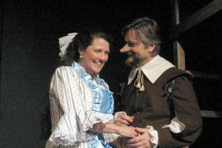 Cyrano (George Hartpence - left) and Roxane (Carol Thompson - right) share a secret.