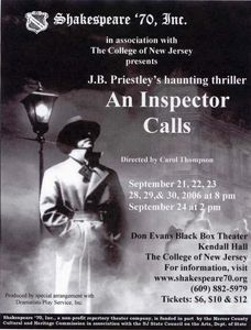 "J.B. Priestley's An Inspector Calls, staged by Shakespeare '70 at The College of New Jersey, is as powerful as any new drama you have seen in years."