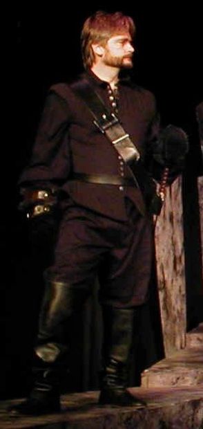 Gloucester’s younger, illegitimate son is an opportunist, whose ambitions lead him to form a union with Goneril and Regan. The injustice of Edmund’s situation fails to justify his subsequent actions, although at the opening of the play when Gloucester explains Edmund's illegitimacy (in his hearing) to Kent, with coarse jokes, the audience can initially feel sympathetic towards him, until his true character is revealed. Like Shylock and his "Has not a Jew eyes...?" (Merchant of Venice, III, 1, 60), Edmund makes a speech, "Why bastard? Wherefore base?" (II, 2, 5) decrying his stereotype before conforming to it. Edmund rejects the laws of state and society in favour of the laws he sees as eminently more practical and useful—the laws of superior cunning and strength. Edmund’s desire to use any means possible to secure his own needs makes him appear initially as a villain without a conscience. But Edmund has some solid economic impetus for his actions, and he acts from a complexity of reasons, many of which are similar to those of Goneril and Regan. To rid himself of his father, Edmund feigns regret and laments that his nature, which is to honour his father, must be subordinate to the loyalty he feels for his country. Thus, Edmund excuses the betrayal of his own father, having willingly and easily left his father vulnerable to Cornwall’s anger. Later, Edmund shows no hesitation, nor any concern about killing the king or Cordelia. Yet in the end, Edmund repents and tries to rescind his order to execute Cordelia and Lear, and in this small measure, he could be said to have proved himself worthy of Gloucester’s blood. However, this last act can also be viewed as a selfish act in the attempt to gain favour from the gods before his death.