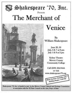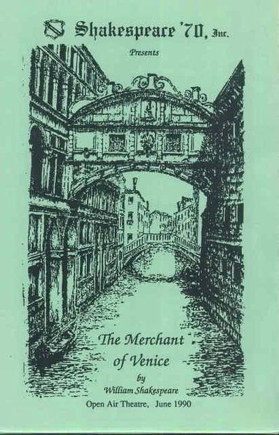 The Merchant of Venice holds a special place in my list of plays simply because it was the very first play I auditioned for after high school... a good deal after high school. It is also the play (or more particularily the audition) when I met my dear good friend, Dale Simon. He and I happened to meet on the street outside and walked in together to the audition at the Artist Showcase Theatre in Trenton, New Jersey. In fact, I met many people during this first production who would become dear friends over the course of my association with Shakespeare`70: Frank and Gail Erath, Steve Kazakoff and Carol Kehoe, Tom Moffit, Tom Curbishley and Cheryl Leaver, David Geisler, Lee Harrod and Howard Goldstein.