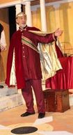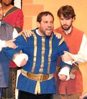 George Hartpence plays Antonio with his usual understated intelligence (it's actually the title role) and Tom Curbishley plays Bassanio, the successful suitor, with easy charm.  Tracy Hawkins has a terrific time as Nerissa, Portia's maid and confidante.  And Tom Moffit makes a return to the group after a three-year battle with a serious illness that has left him sightless, in the role of Old Gobbo.  And what a welcome return it is."