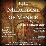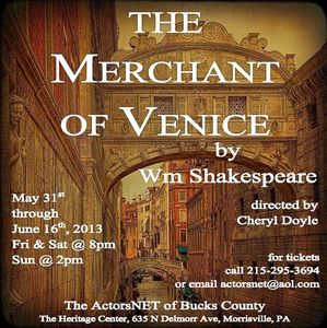 The goal for Actors' NET, which is staging Merchant of Venice May 31-June 16 at the Heritage Center in Morrisville Pa., is to delve into the text to do justice to Shakespeare, and to Shylock, who IS a villain, but often a sympathetic one.