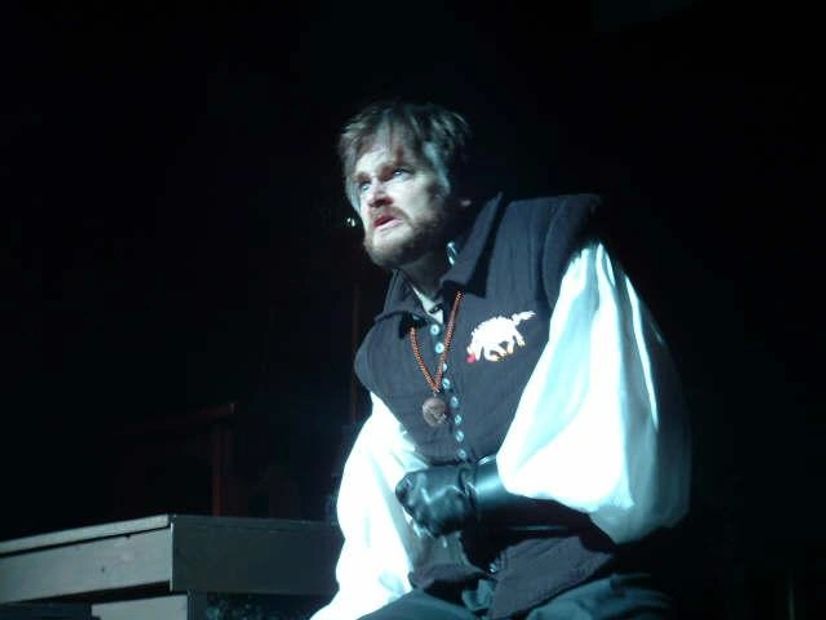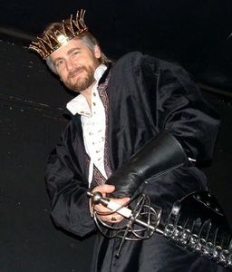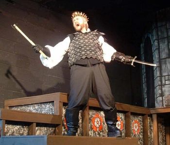 In addition to working with Cheryl Doyle in editing the text, I was also given the opportunity to design the set for our production. With technical assistance from my friend and co-star in this production, Dale Simon, we designed a simple, Tudor-esque apearance while leaving plenty of open space and levels to accommodate the large cast. And Stephen Kazakoff worked out some amazing fight choreography for us that allowed my Richard to fight with axe and broadsword and for the "white boar" to get his comeuppance, appropriately enough, via a boar spear.