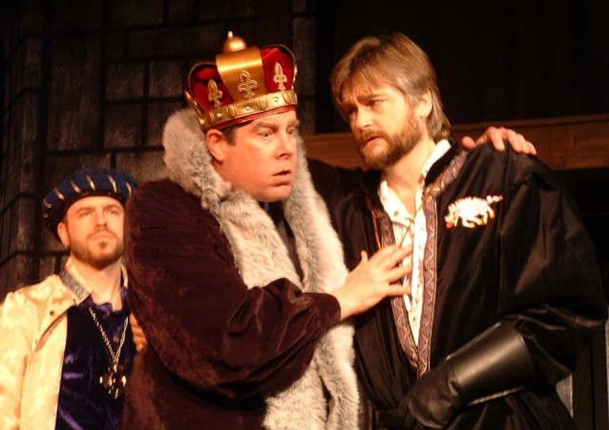 George Hartpence plays Richard (for the first act he is Richard of Gloucester, and by Act IV, Scene II, he is King). He begins by establishing clearly both that he is "misshapen" and that he is "determined to prove a villain," and does so with relish. In an inspired bit of text juggling, a monologue that closes Henry VI, Part III is used here to introduce our evening's journey. And then we watch, almost in awe, as Richard grins at evil, soothes anguish and banters with assassins. It is a delicious performance from one of the area's most versatile actors.